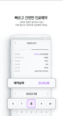 - 모바일 예약기능 소개 : 이제 원하는 동물병원에서 모바일 예약 기능을 즉시 사용할 수 있습니다. 이 기능을 이용하면 원하는 날짜, 시간, 진료 종류를 원하는 대로 설정하여 간편하게 진료 예약을 할 수 있습니다.