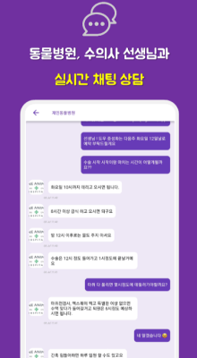 이제 가까운 동물병원에 대한 세부 정보를 쉽게 찾을 수 있습니다. 이 어플을 동물 병원과 연계되어 있을 즉시 예약할 수 있는 기능을 쉽게 이용할 수 있습니다. 또한 실시간 채팅 기능을 통해 신속하고 효율적인 문의가 가능합니다.