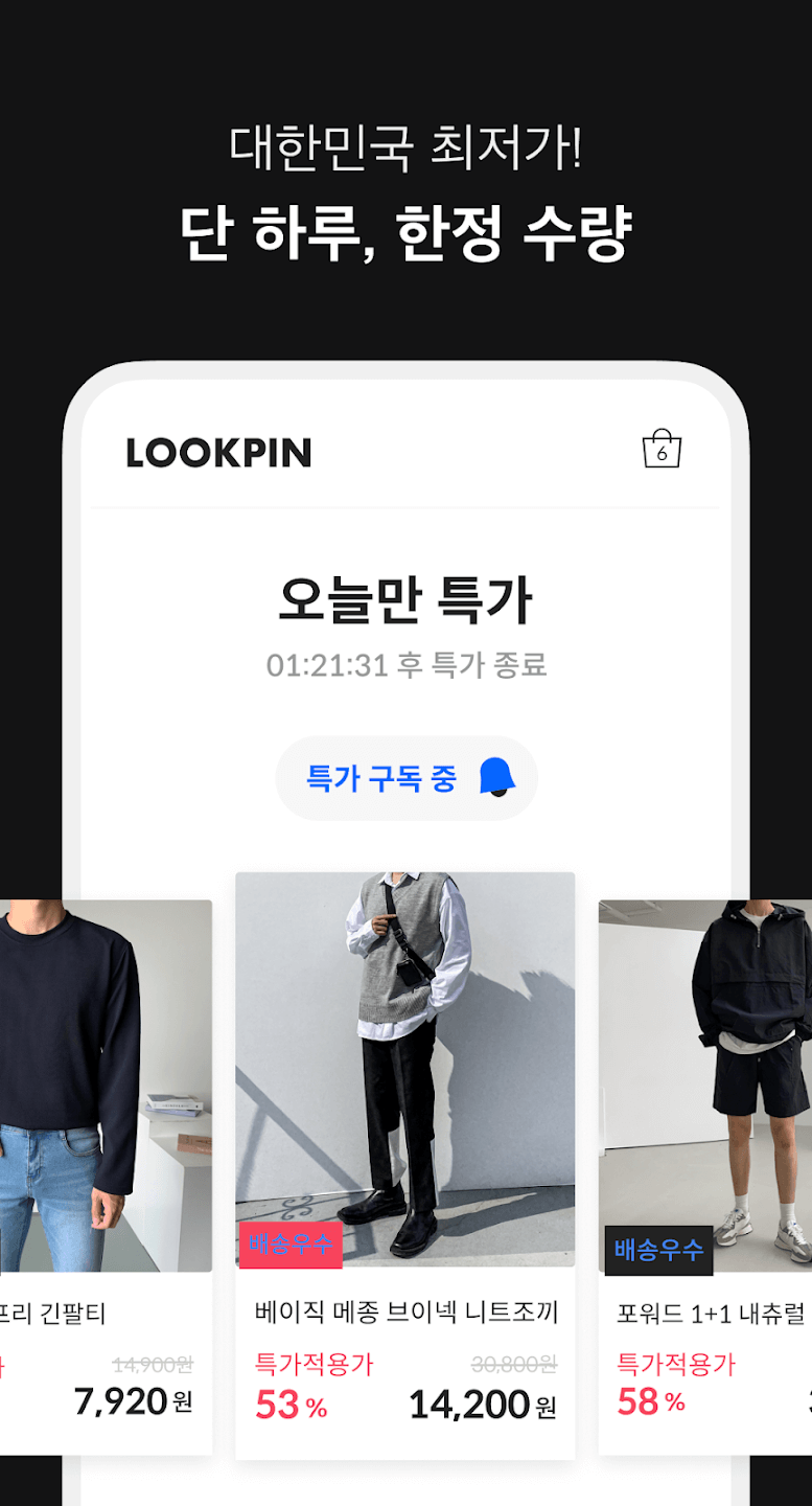 - 흥미로운 특별 행사 및 혜택 : 룩핀에서는 매일 특별한 가격에 한정 수량으로 제공되는 깜짝 이벤트가 진행됩니다. 룩핀의 독점 스타일링 이벤트는 완벽한 의상을 연출할 수 있도록 도와주어 패션의 완성을 도와드립니다.