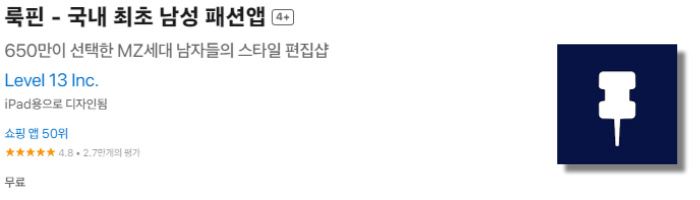2. 룩핀 - 650만 남성 패션앱