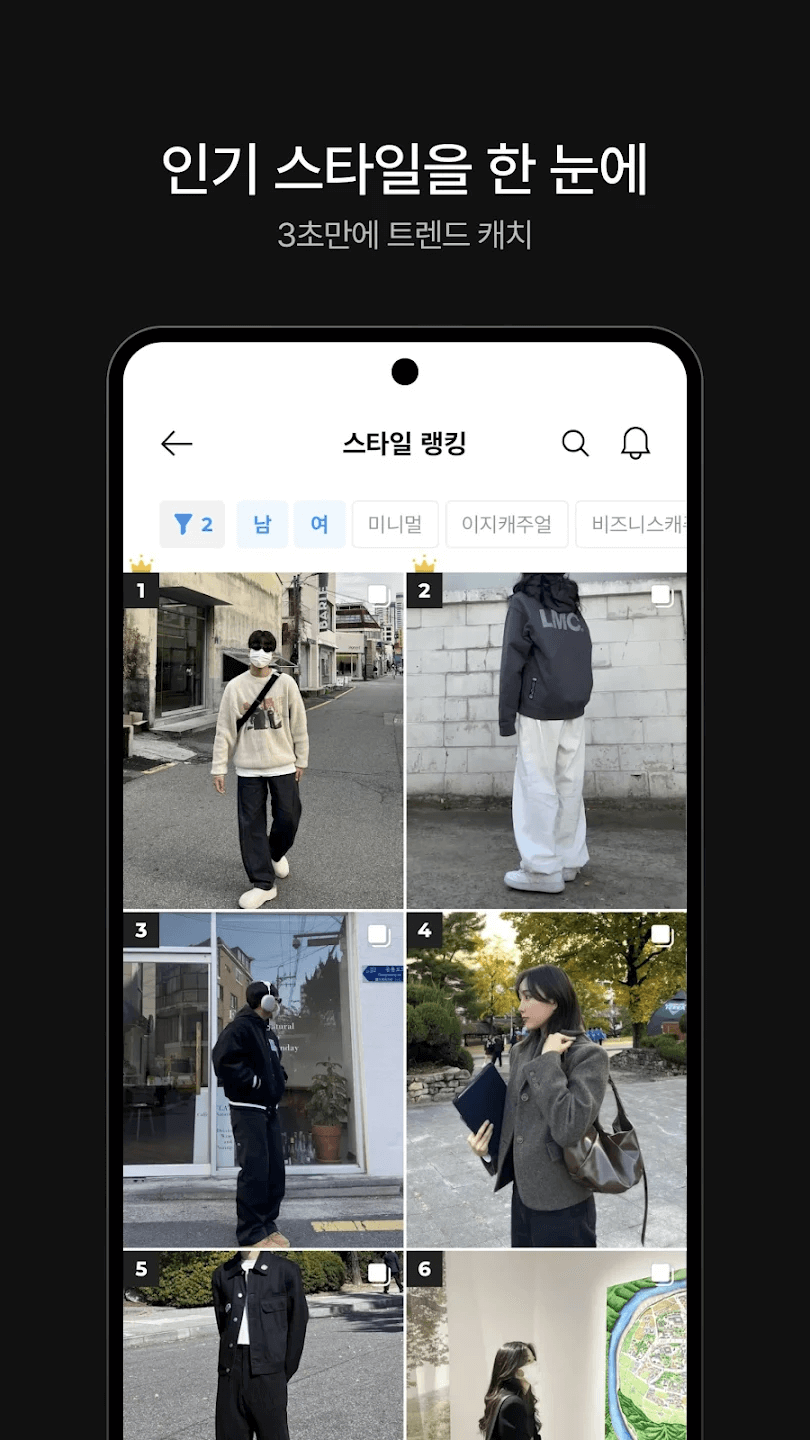 - 매일 업데이트되는 트렌드 : 최신 트렌드를 확인하기 위해 유튜브에서 인스타그램가지 검색하는 것이 지친다는 것을 잘 알고 있습니다. 온더룩에서 매일매일 스타일 업데이트를 통해 의류선택에 영감을 주므로 패션 헌팅이 더 간단하고 쉽습니다.