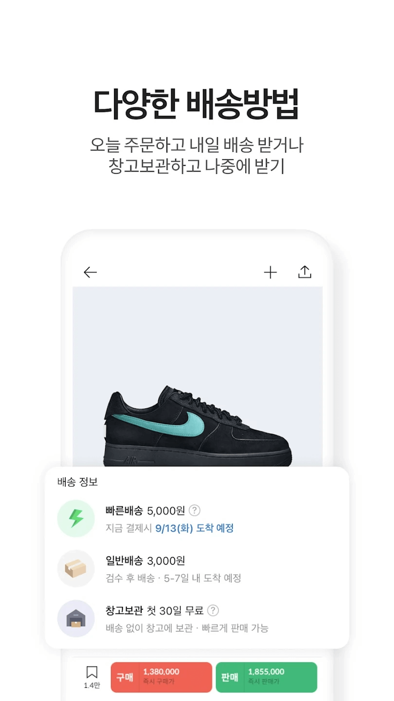 - 기본 혜택 : KREAM을 사용하면 빠른 배송과 신뢰성을 기대할 수 있습니다. '빠른 배송'이 표시된 상품을 오늘 결제한다면 내일 이면 상품을 문 앞에서 받아볼 수 있습니다. 그렇게 간단해요!