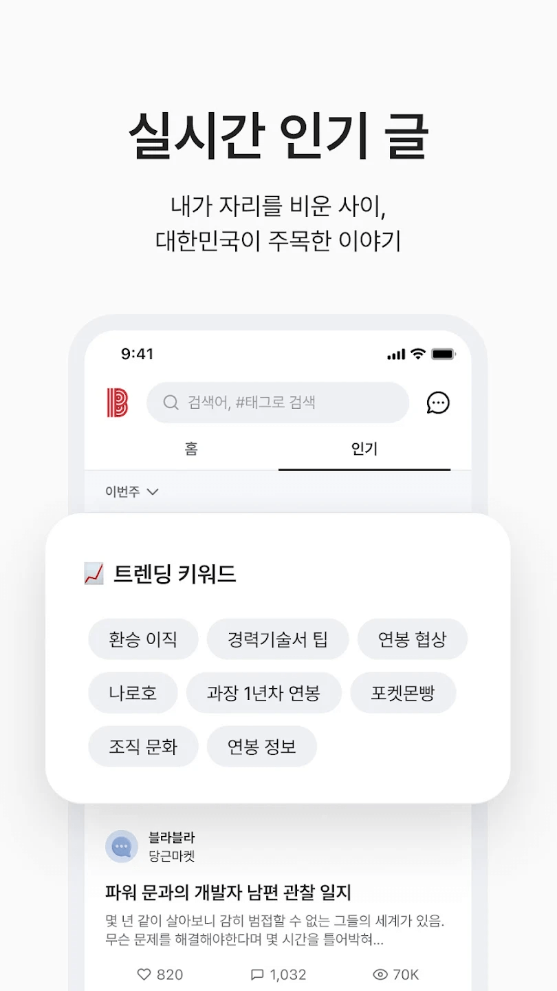 오늘날과 같이 빠르게 변화하는 비즈니스 환경에서는 다른 직장인들이 논의하는 핫 토픽을 놓치기 쉽습니다. 블라인드는 놓칠 수 있는 트렌드 기사를 편리하게 요약 아여 제공합니다. 더 이상 동료들 사이에서 가장 인기 있는 이야기를 놓칠까 걱정할 필요가 없습니다.