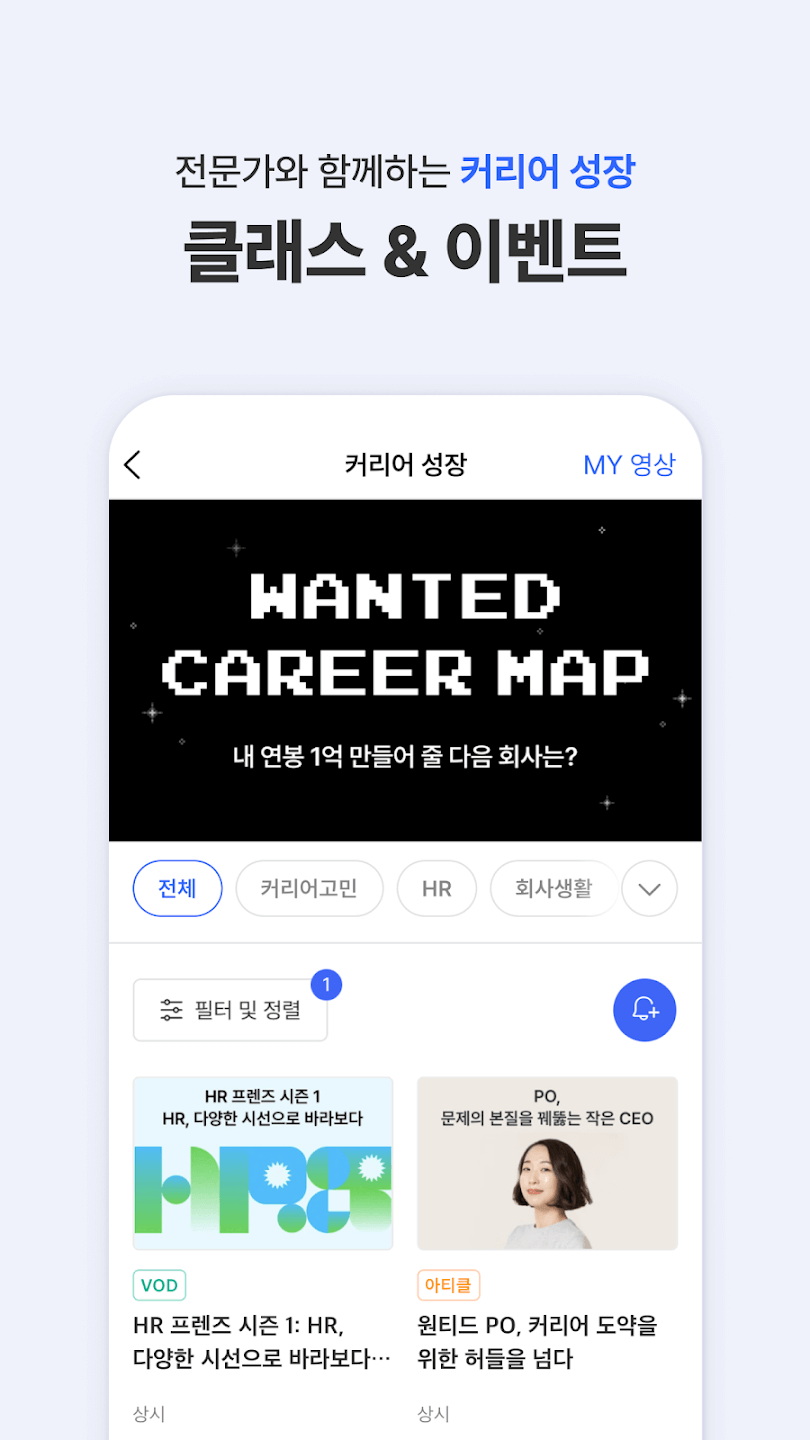 - 업계전문가의 커리어 인사이트 : 전문가가 주도하는 커리어 콘텐츠, 기사 및 업계 인사이트를 활용하세요. 커리어 여정은 원티드와 함께 시작됩니다.