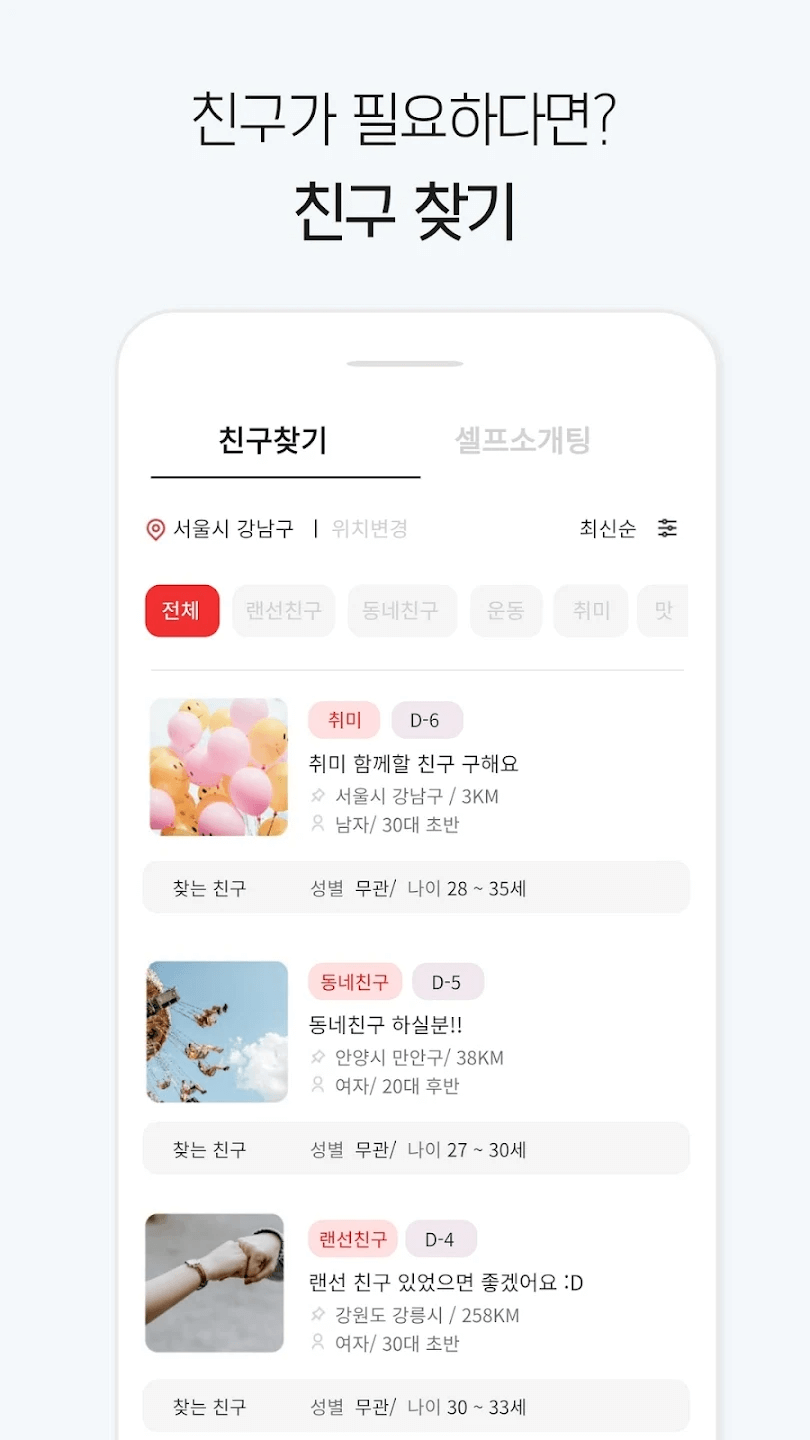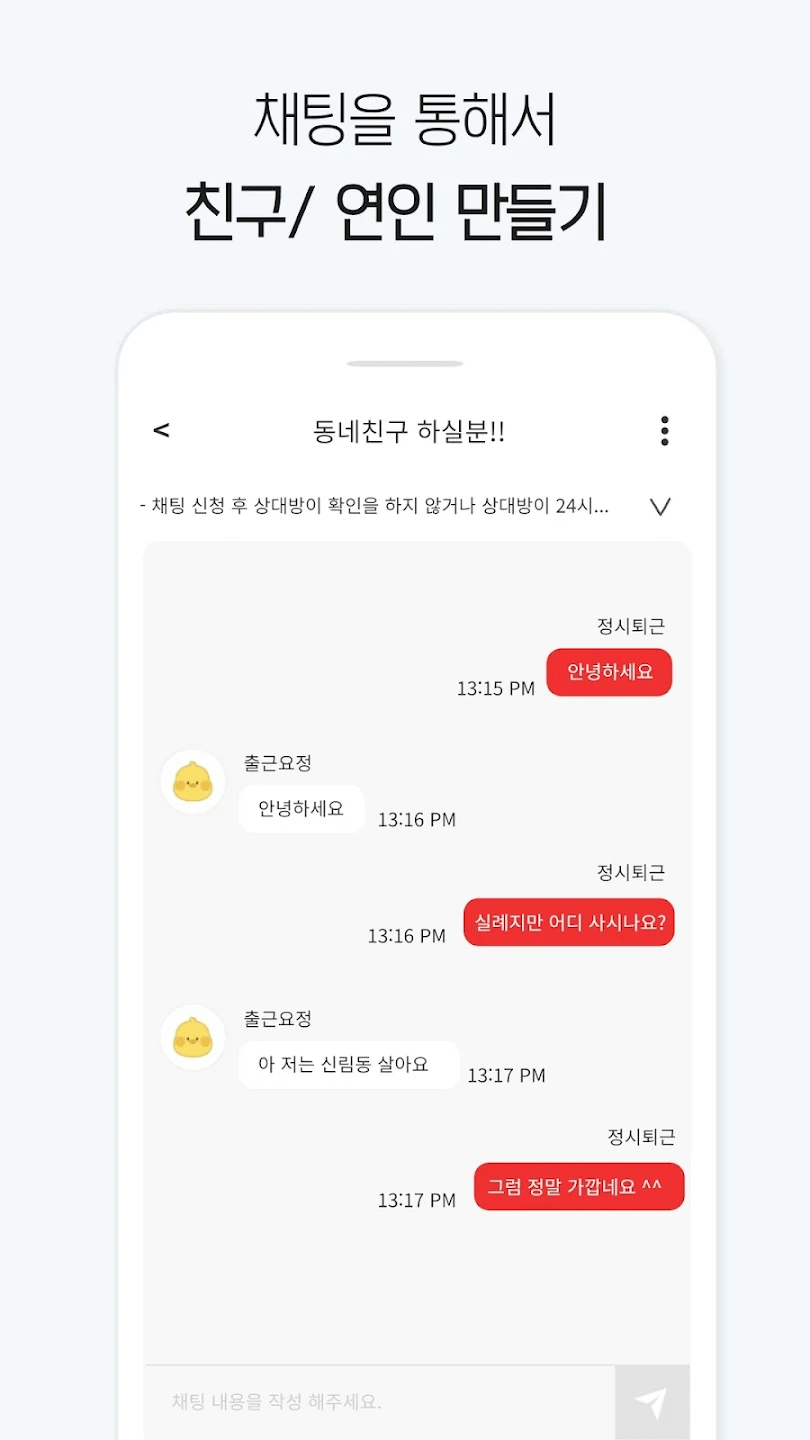 - 친구 찾기/셀프 소개팅 : 친구 찾기/검색 기능으로 오프라인에서 우정을 쌓아보세요. 채팅기능을 사용하여 대화를 시작하고 마음에 드는 사람과 친구를 맺어보세요. 대화를 하고 서로의 마음이 맞다면 금상첨화입니다.