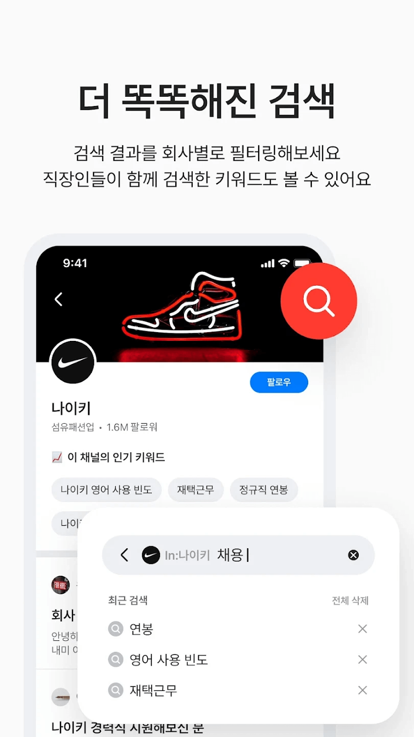 - 더 스마트한 검색 : 회사 또는 주제별로 검색 결과를 필터링할 수 있습니다. 비즈니스 세계의 흐름을 놓치지 않으려면 현재 국내 전문가들이 사용하고 있는 실시간 인기 검색어를 살펴보세요.