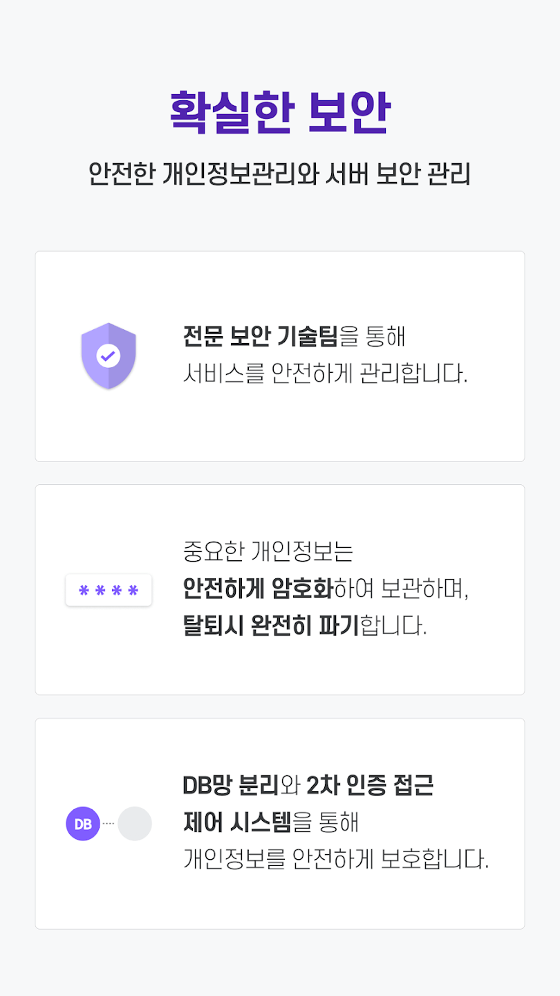- 정보 보호 및 서버 운영 등 대형 스타트업 표준에 맞춘 기술.