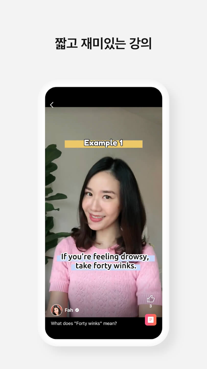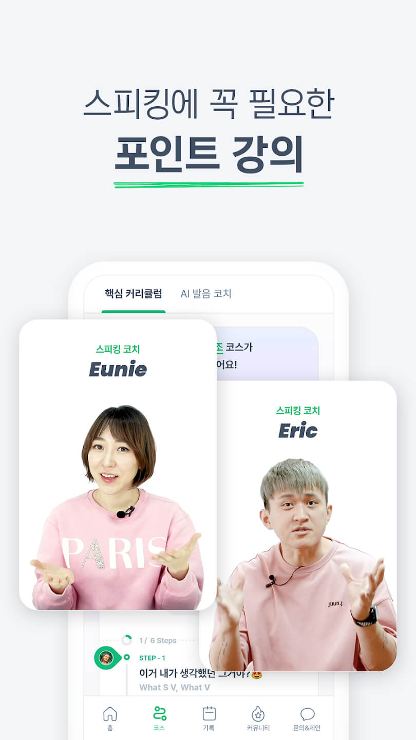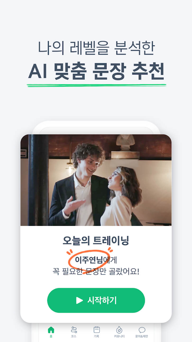 - 완벽한 영어 스피킹 툴킷 : 플랭의 종합적인 프로그램은 영어 회화를 잘하는데 필요한 모든 도구를 제공하고 있습니다. 영어 표현 강의보터 발음 팁과 어휘 확장까지 , 다음 단계에 대해 걱정할 필요가 없습니다. AI 플랫폼이 언어 실력 향상에 가장 유용한 콘텐츠를 지능적으로 제안합니다.
