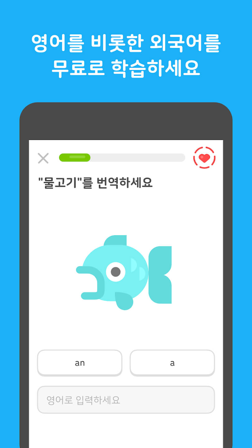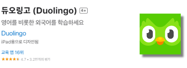 전 세계 언어 학습 애플리케이션을 제공하는 선도적인 업체인 듀오링고와 함께 영어실력 향상을 위한 여정을 시작하세요. 듀오링고는 품질과 효과로 전 세계적으로 인정받고 있습니다. 월스트리트 저널은 듀오링고를 '최고의 무료 언어 학습 앱'으로 선정했습니다. 타임지는 "듀오링고는 교육의 미래를 여는 비밀"이라고 평가했습니다.