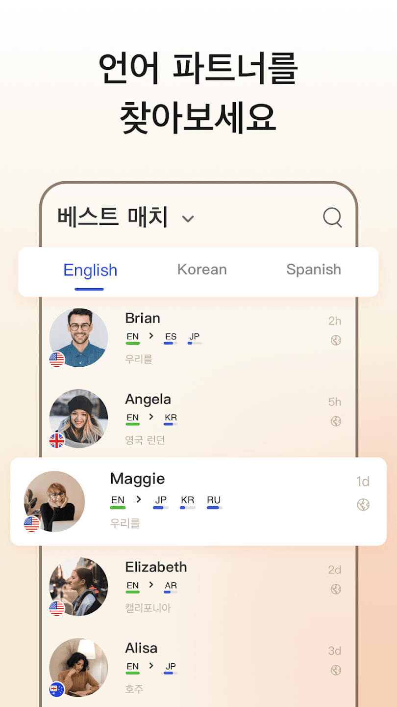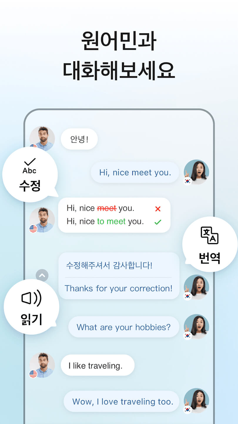 150개국 4천만 명의 회원으로 구성된 헬로톡의 활기찬 커뮤니티의 일원이 되어보세요. 이 앱을 사용하면 언어, 지역, 나이등의 필터를 사용하여 이상적인 언어 파트너를 쉽게 찾을 수 있습니다. 또한 번역, 교정 및 인스턴트 캡션과 같은 다양한 기본 제공도구로 원활한 소통을 보장합니다.