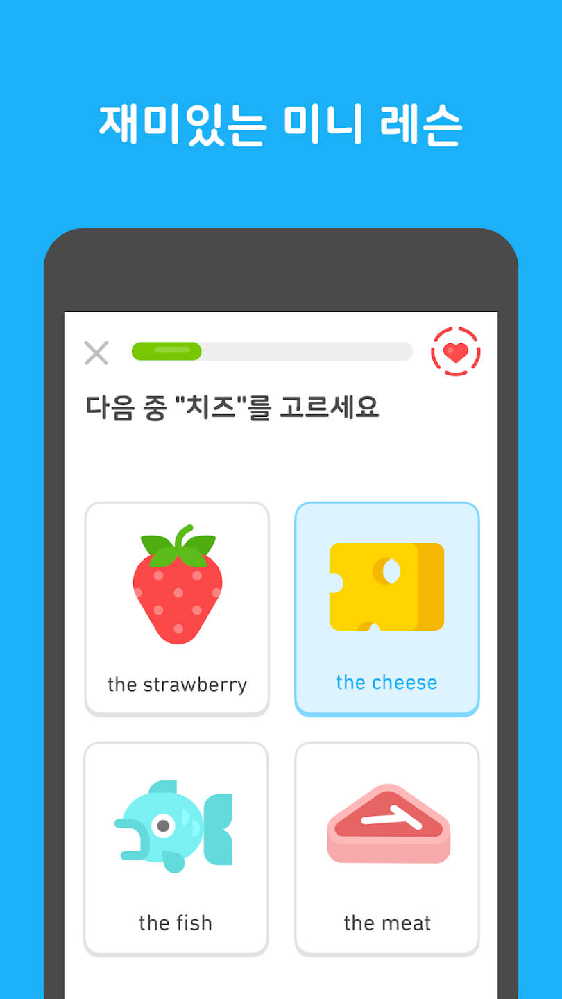 전 세계 언어 학습 애플리케이션을 제공하는 선도적인 업체인 듀오링고와 함께 영어실력 향상을 위한 여정을 시작하세요. 듀오링고는 품질과 효과로 전 세계적으로 인정받고 있습니다. 월스트리트 저널은 듀오링고를 '최고의 무료 언어 학습 앱'으로 선정했습니다. 타임지는 "듀오링고는 교육의 미래를 여는 비밀"이라고 평가했습니다.