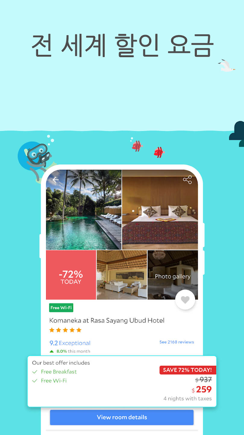 휴가를 위한 저렴한 숙소를 찾고 계신가요? 전 세계 백만 개가 넘는 호텔을 검색하고 비교할 수 있는 최고의 여행 앱인 트리바고를 사용해 보세요!