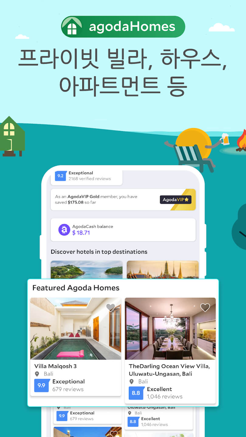 휴가용 주택, 리조트, 아파트 등 다양한 숙소를 둘러보세요. 여행에 필요한 테마별로 필터링하고 지도에서 위치를 확인하세요. 실제 고객 후기를 읽고 마음에 드는 장소를 저장하세요. 안전하고 빠른 예약을 경험하세요. 지금 결제 또는 나중에 결제옵션을 선택하고, 결제 세부정보를 저장하여 나중에 더 빠르게 예약할 수 있으며, 애플페이를 사용하여 편리하게 결제할 수 있습니다.