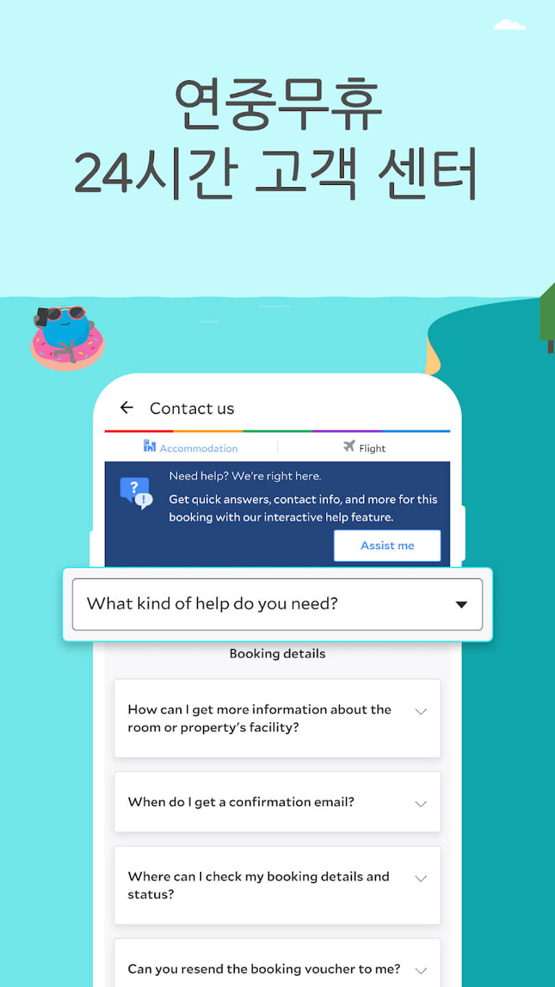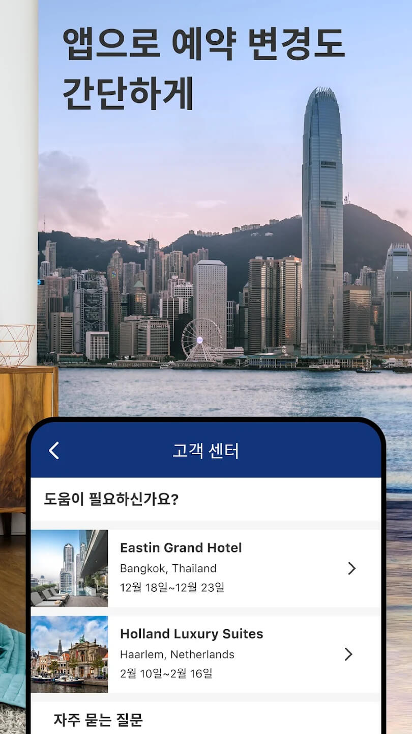 특별혜택, 무료 취소 및 예약 또는 신용카드 수수료 없이 편리하게 예약하세요. 40개 이상의 언어로 24시간 만족 스러 온 고객 서비스를 경험해 보세요. 언제 어디서나 예약을 관리하며, 번거로움 없는 여행을 즐겨보세요.