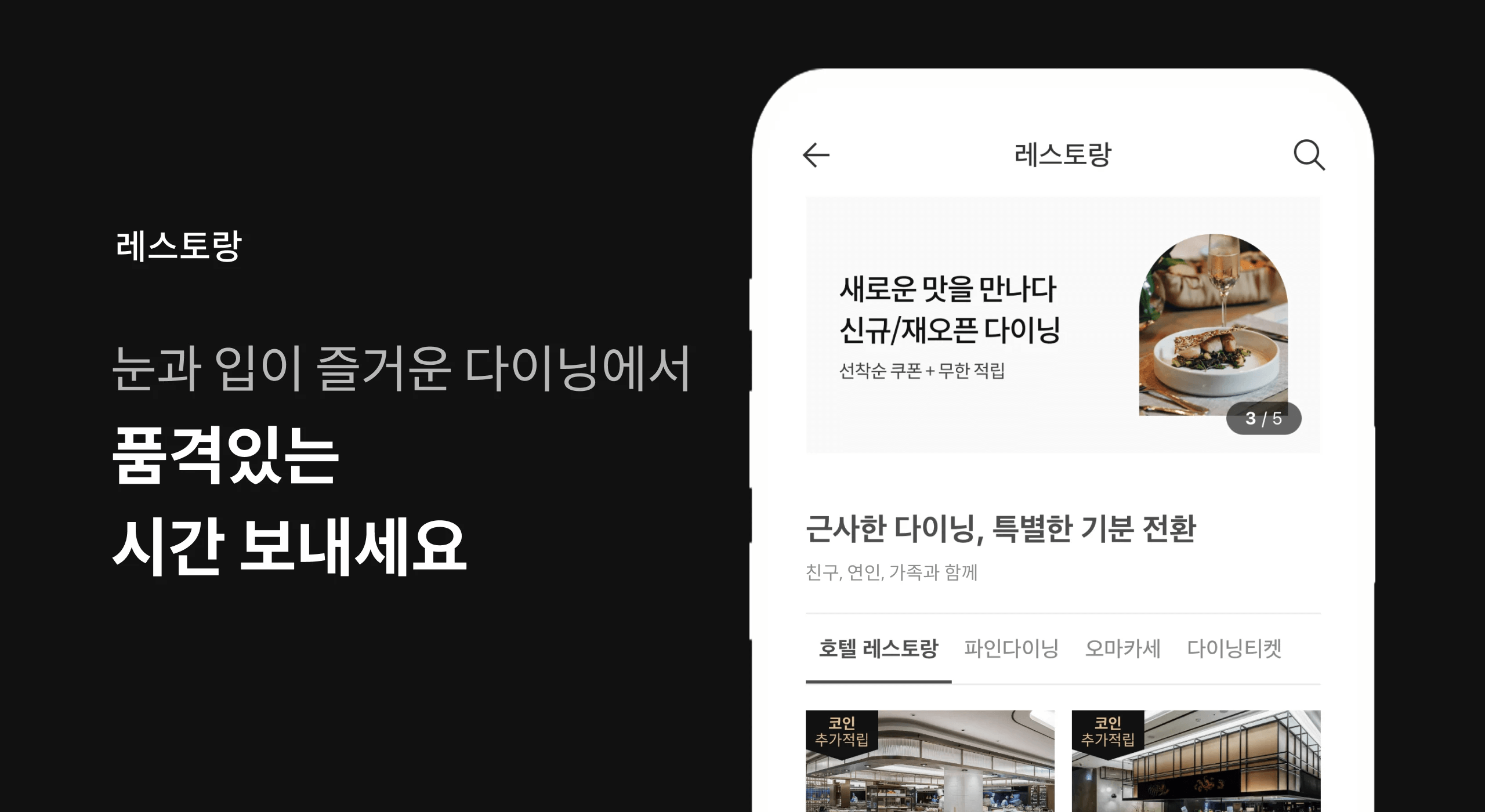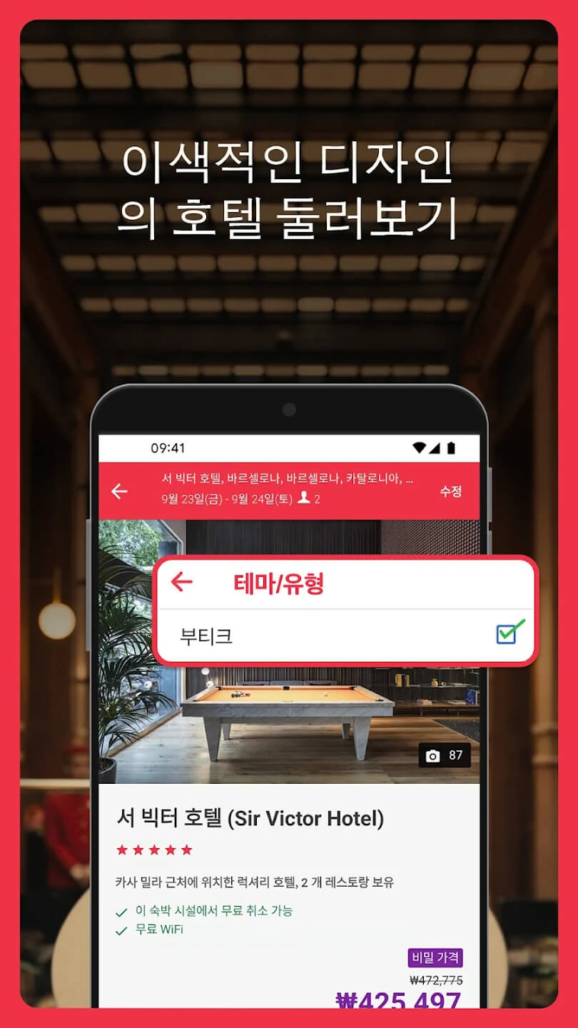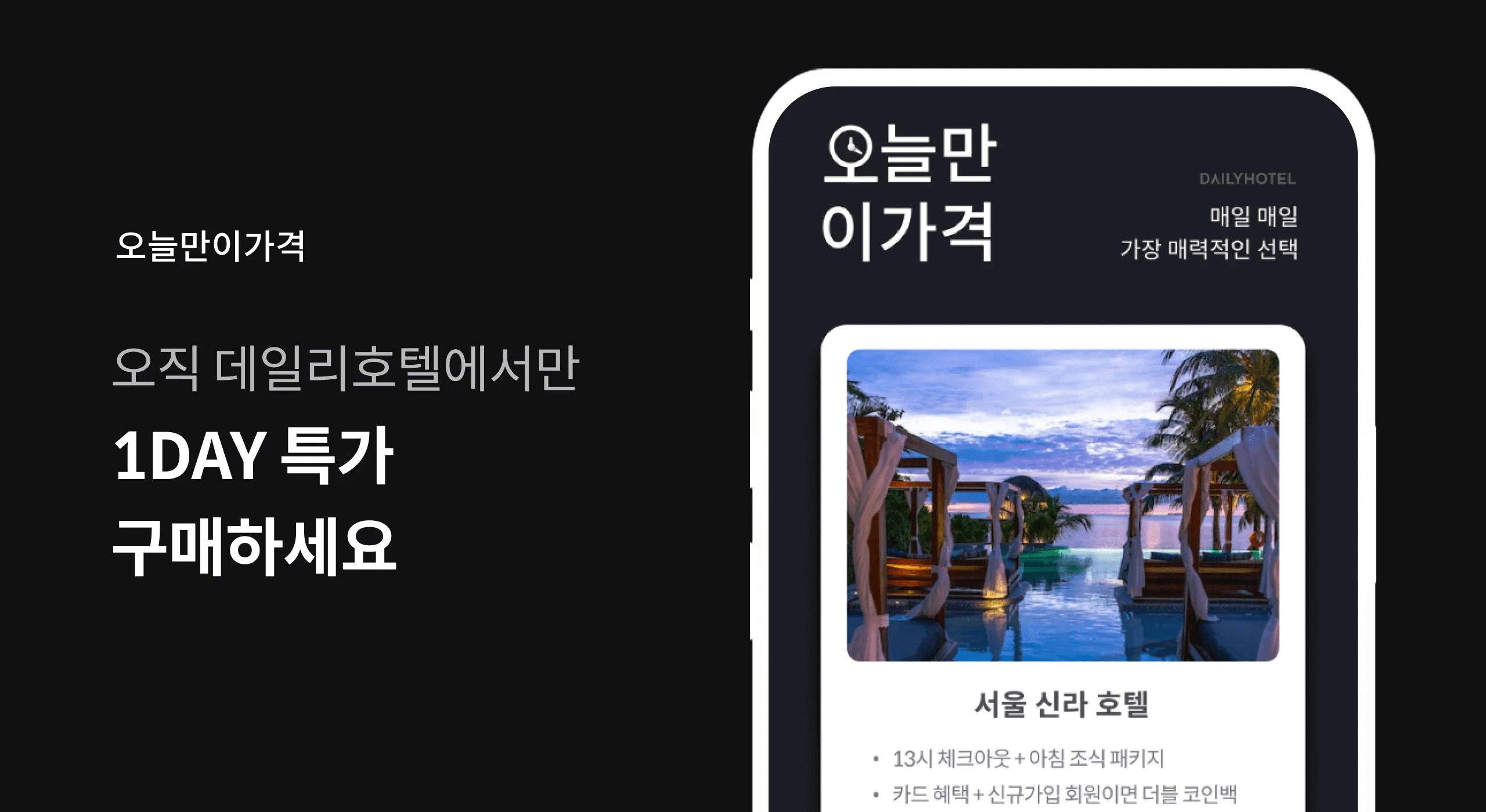 데일리 호텔 앱으로 특별한 혜택을 경험해 보세요! 국내 호텔 예약 시 최대 86% 할인 혜택을 누리고 리조트, 모텔, 호텔 등 328,000개의 인기 숙박시설 중에서 원하는 숙소를 예약하세요. 고급스러운 호텔 특가상품을 매주 업데이트됩니다. 또한 스파 등 1,000여 개의 레저 상품을 할인된 가격에 이용하고, 전국 뷔페 및 레스토랑에서 최대 60% 할인된 가격으로 식사하세요.