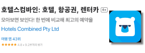 전 세계 호텔 가격 비교를 위한 원스톱 앱인 호텔스컴바인으로 글로벌 여행을 경험하세요. 3억 명 이상의 여행객과 함께한 호텔스 컴바인은 이제 항공권 및 렌터카 비교 기능도 함께 제공해 드립니다. 지금 바로 사용하기 쉬운 앱을 다운로드하고 다음과 같은 기능을 사용해 보세요.