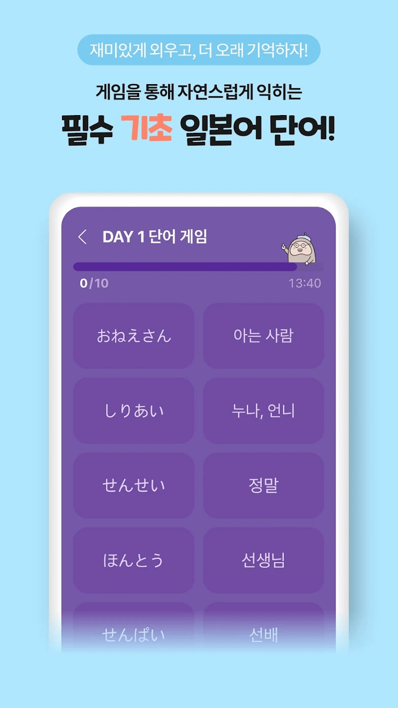 - 일본어와 한국어 의미를 결합한 단어 매칭 게임을 즐겨보세요.