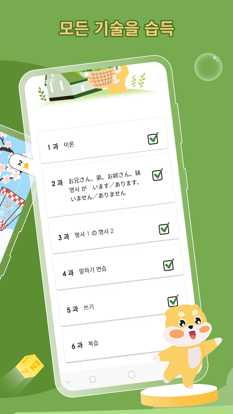 완벽한 일본어 학습을 위해 오신 것을 환영합니다. 여기에서는 필요에 맞는 다양한 학습 방법을 찾을 수 있습니다. 매력적인 콘텐츠, 실생활 회화, 원어민 일본어 동영상, 학습을 게임처럼 느끼게 하는 보상 시스템 등 일본어 학습에 필요한 모든 것이 포함되어 있습니다.
