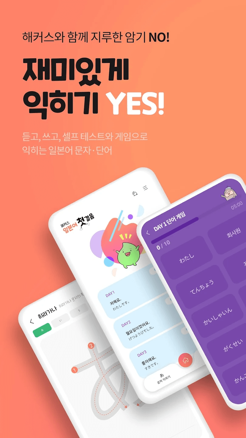 - 해커스 일본어에는 학습을 강화할 수 있는 재미있는 단어 게임이 포함되어 있습니다. 이러한 매력적인 활동을 통해 언어와 상호작용하며 이해를 강화할 수 있습니다.