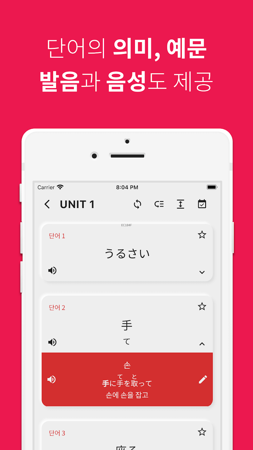- 이제 막 일본어를 배우기 시작했거나 한자를 어려워하는 분들을 위해 저희가 도와드리겠습니다. 한자 발음은 히라가나와 가타카나로 모두 제공되며, 음성 지원도 제공되어 학습을 안내해 드립니다. 이 앱은 일본어에 대한 사전 지식이 없더라도 듣고 관찰하면서 학습할 수 있도록 구성되어 있습니다.