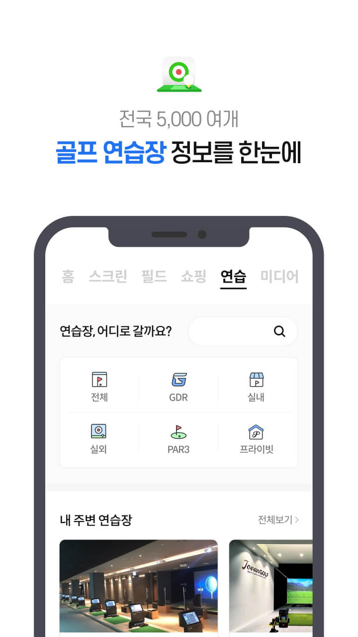 - 전국연습장에 대한 종합적인 비교 정보 - 전국 5,000여 개의 연습장에 대한 귀중한 정보를 얻으세요. 실 사용자의 피드백을 검토하여, 다양한 레슨정보와 나에게 맞는 맞춤형 스윙 분석을 이용하세요.
