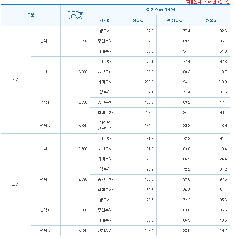 전기차 충전 비용 23년 1월 1일 개정