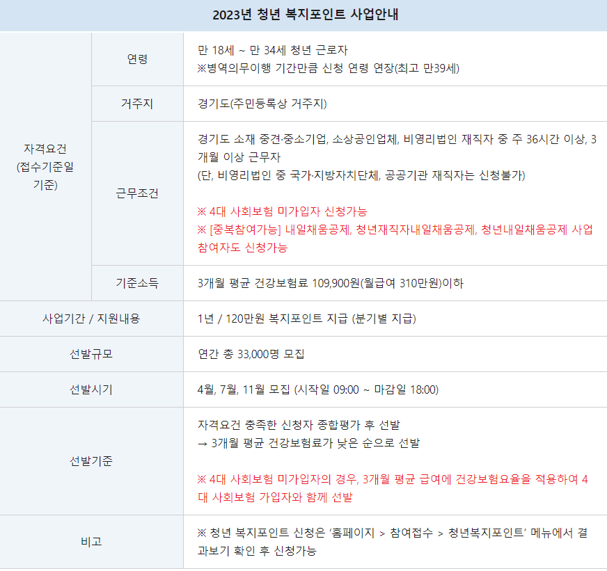 경기도 청년 복지 포인트 자격요건